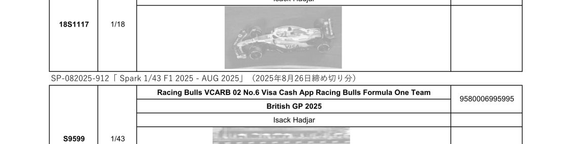 Date:2025年12月9日Posted By:Spark Japan 2Category:New product information (新商品情報)Tag:1/43, F1, Le Mans, spark, SUPER GT, 新商品 New Item Information