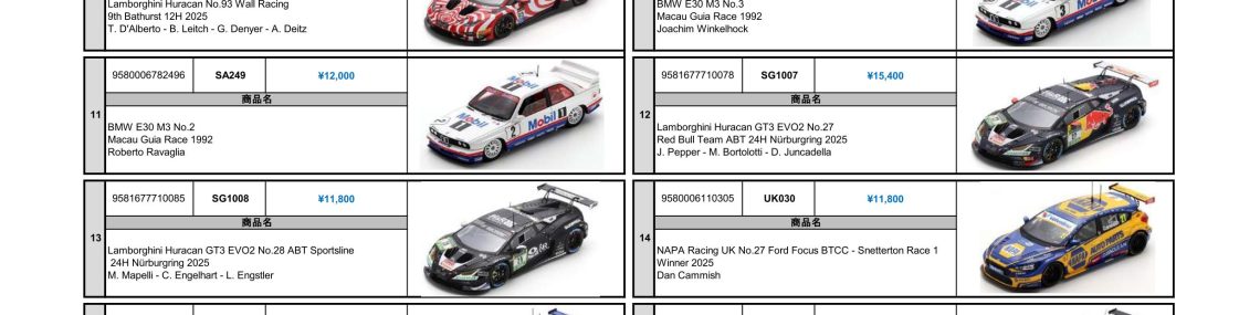 Date:2026年3月6日Posted By:Spark Japan 2Category:Pre order (予約注文)Tag:1/12, BTCC, Le Mans, spark Preorder Information