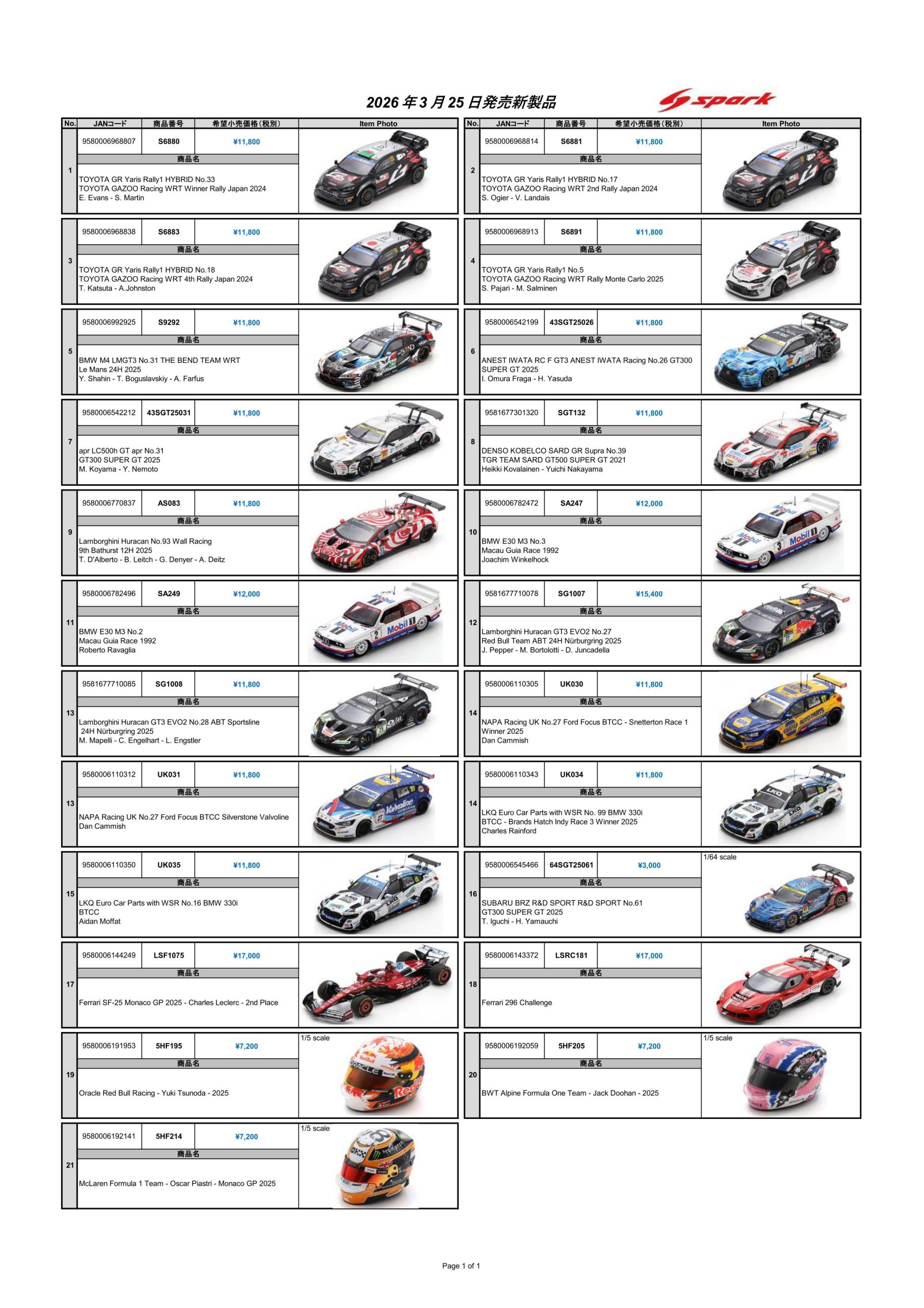 Date:2026年3月18日Posted By:Spark Japan 2Category:Pre order (予約注文)Tag:1/18, 1/64, F1, Le Mans, RALLY Preorder Information