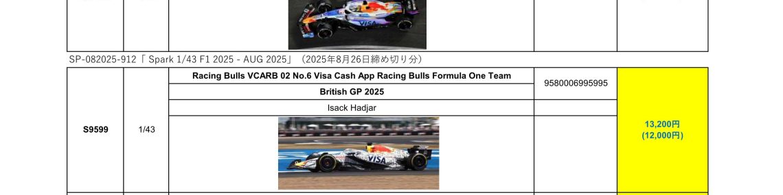 Date:2026年1月6日Posted By:Spark Japan 2Category:Pre order (予約注文), update information (更新情報)Tag:1/18, 1/43, F1, 予約注文, 新商品 【受注再開のお知らせ】