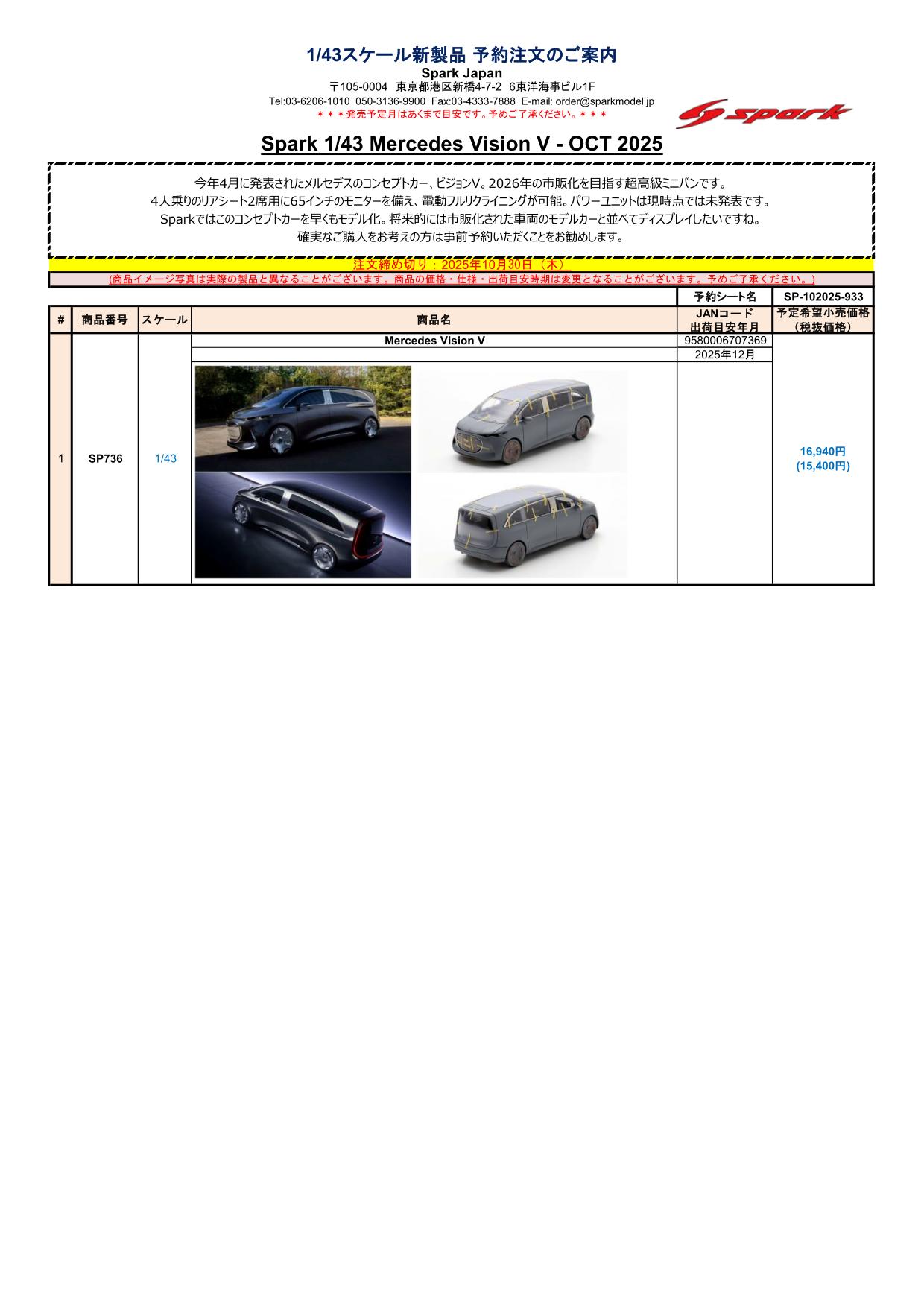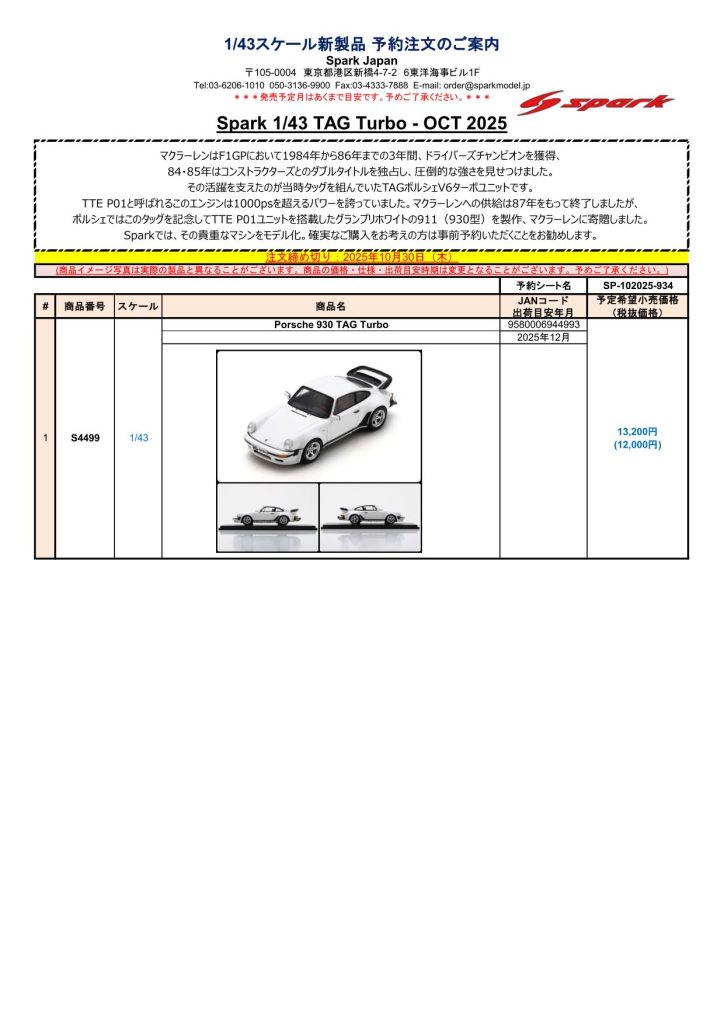 Date:2025年10月9日Posted By:Spark Japan 2Category:Pre order (予約注文)Tag:1/43, 1/64, F1, Looksmart, spark Spark製品お取り扱いショップにて、現在予約注文を受け付け中の新製品です。弊社HPやお電話・メールでの予約受け付けはしておりませんのでご了承ください。