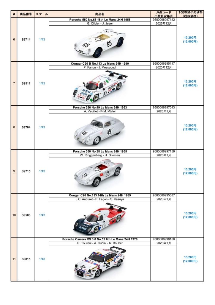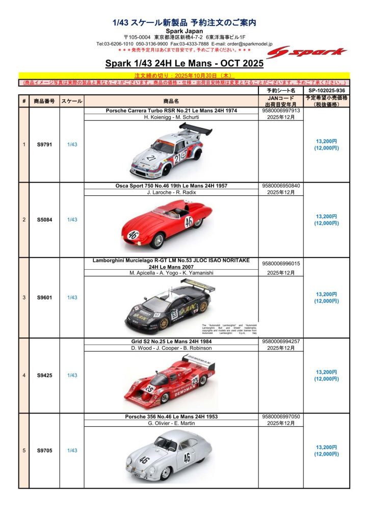 Date:2025年10月10日Posted By:Spark Japan 2Category:Pre order (予約注文)Tag:1/43, Le Mans, spark, 予約注文 Spark製品お取り扱いショップにて、現在予約注文を受け付け中の新製品です。弊社HPやお電話・メールでの予約受け付けはしておりませんのでご了承ください。