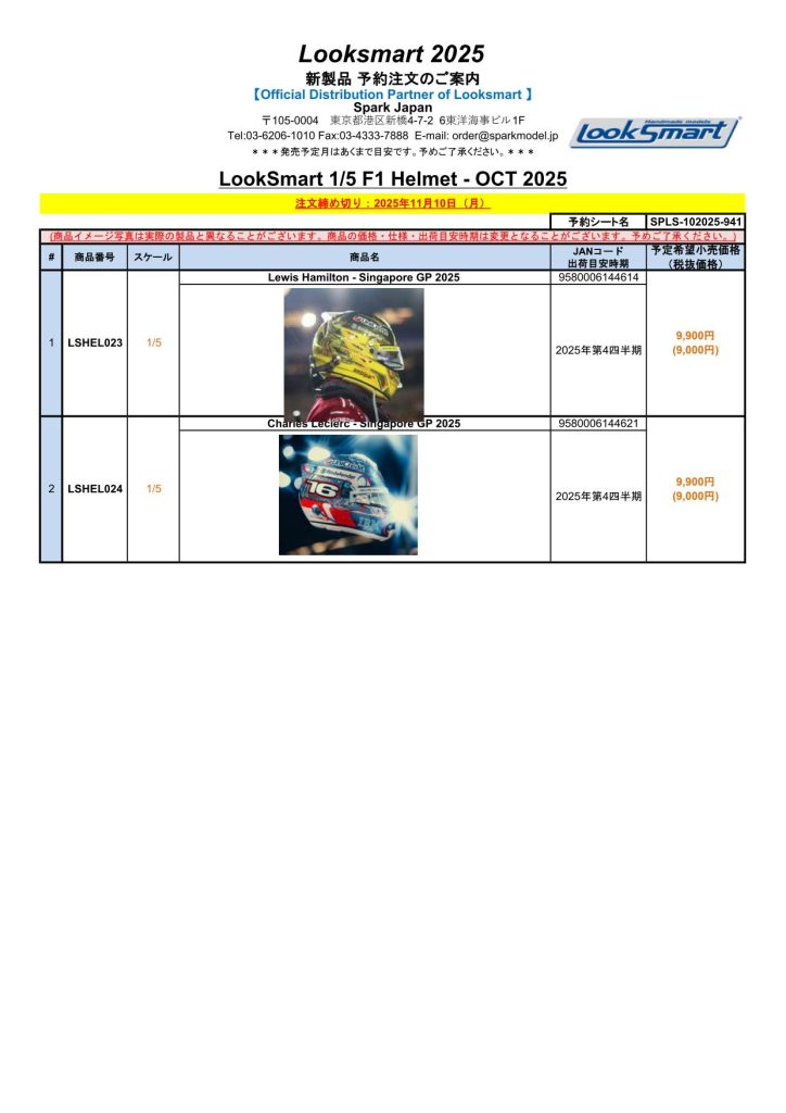 Date:2025年10月17日Posted By:Spark Japan 2Category:Pre order (予約注文)Tag:1/5, helmet, Looksmart Spark製品お取り扱いショップにて、現在予約注文を受け付け中の新製品です。弊社HPやお電話・メールでの予約受け付けはしておりませんのでご了承ください。