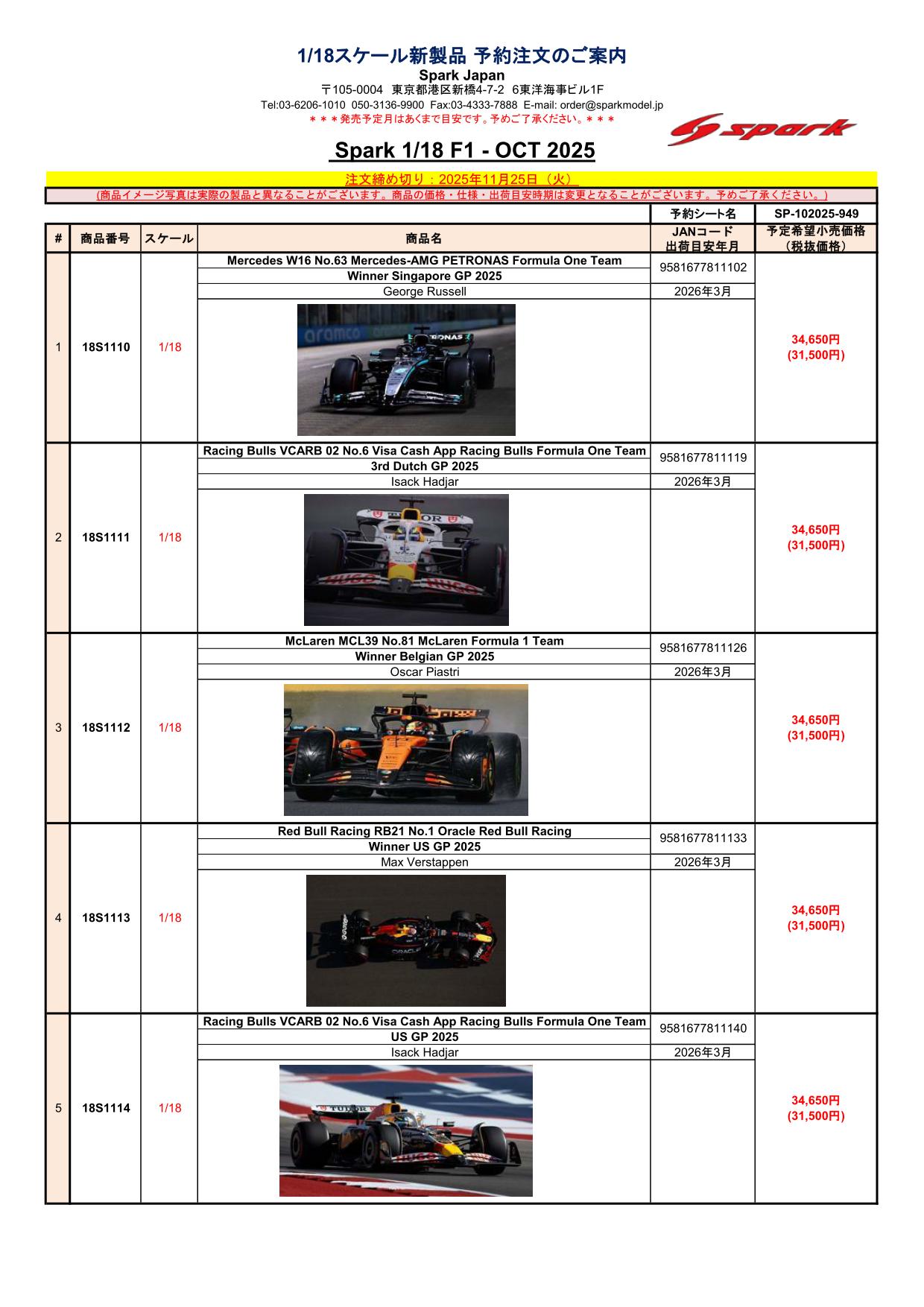 Date:2025年11月1日Posted By:Spark Japan 2Category:Pre order (予約注文)Tag:1/18, 1/43, F1, Hyundal, spark Spark製品お取り扱いショップにて、現在予約注文を受け付け中の新製品です。弊社HPやお電話・メールでの予約受け付けはしておりませんのでご了承ください。