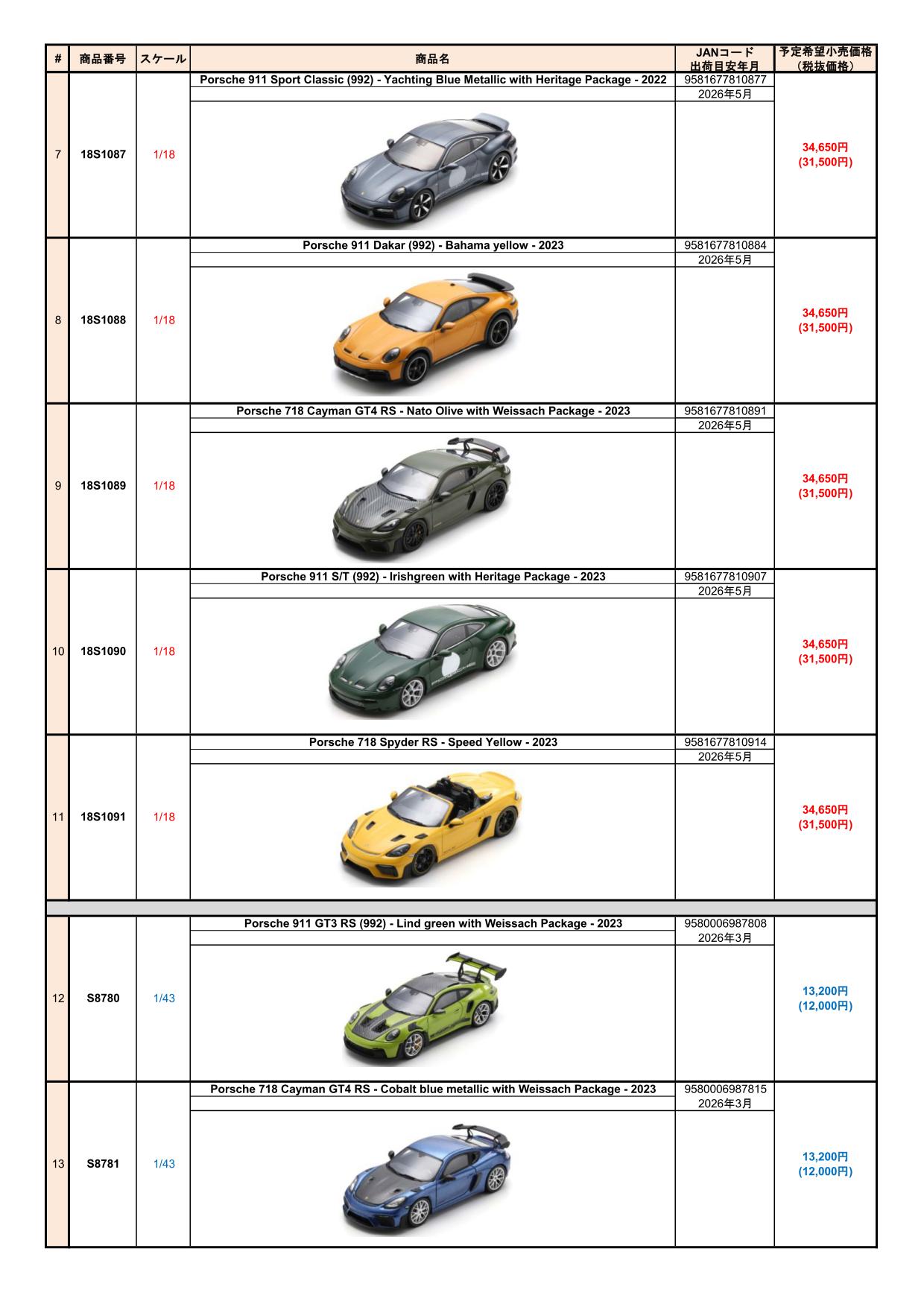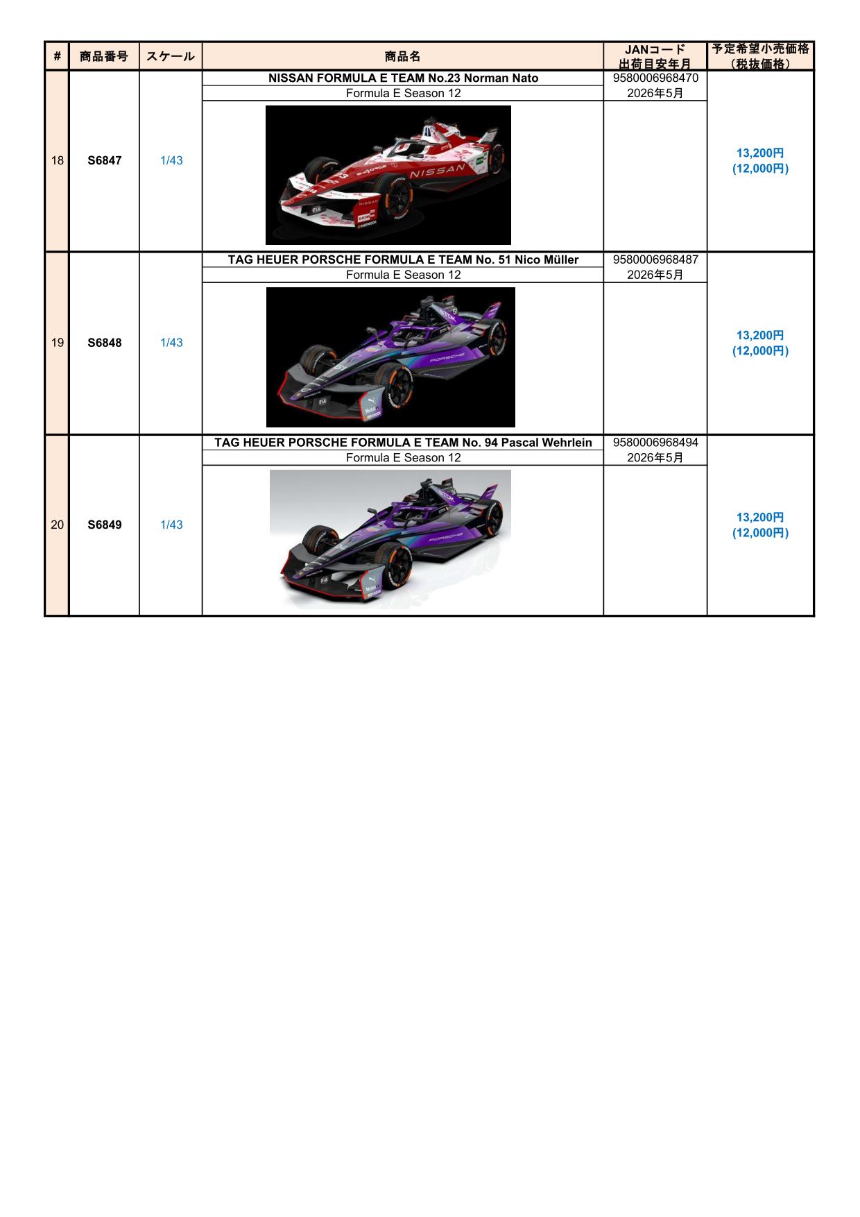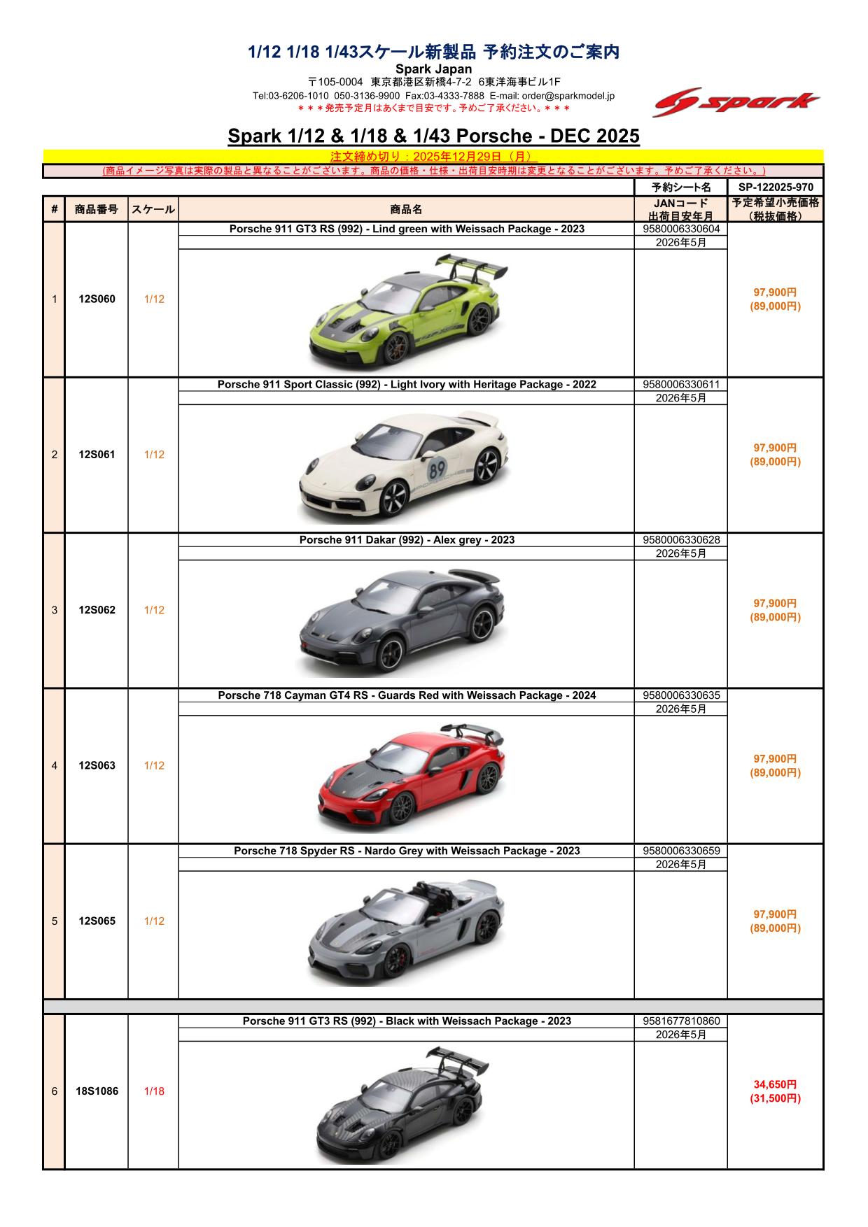Date:2025年12月8日Posted By:Spark Japan 2Category:Pre order (予約注文)Tag:1/12, 1/18, 1/43, DTM2025, FORMULA E, Porsche, spark Spark製品お取り扱いショップにて、現在予約注文を受け付け中の新製品です。弊社HPやお電話・メールでの予約受け付けはしておりませんのでご了承ください。