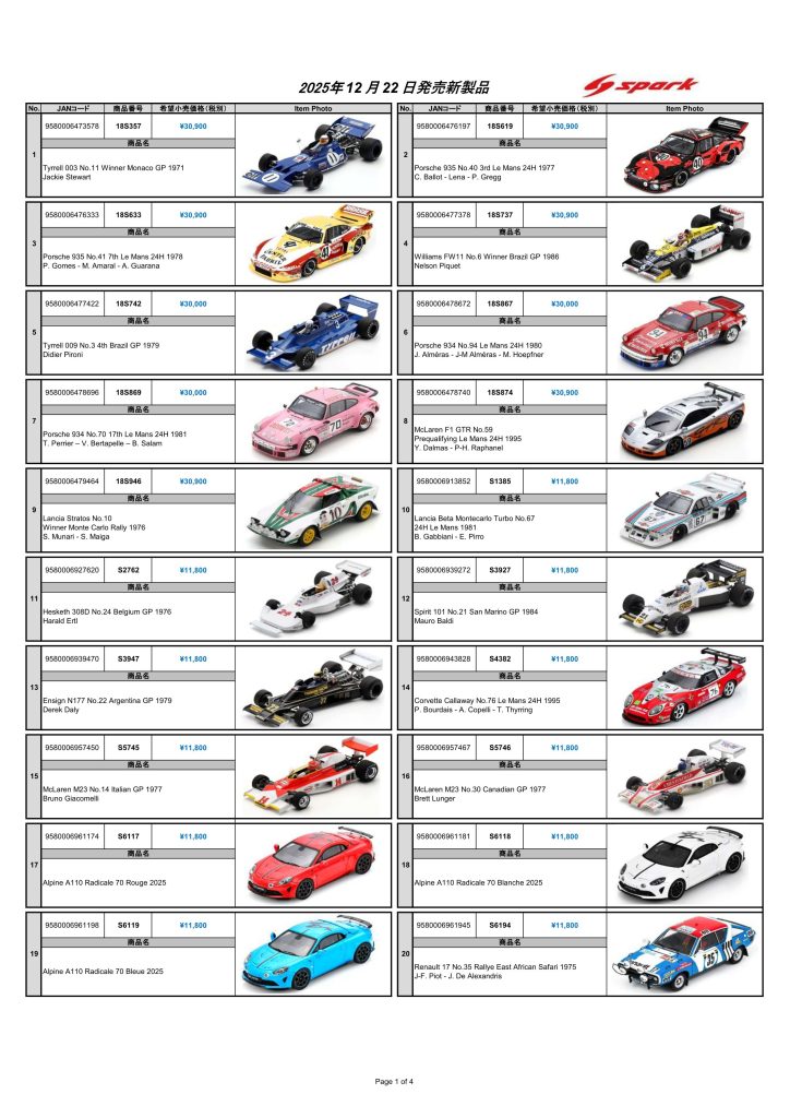 Date:2025年12月22日Posted By:Spark Japan 2Category:New product information (新商品情報)Tag:1/18, 1/43, Schuco, spark, 新商品 Spark / Schuco製品お取り扱いショップにて、早いところでは12月22日より発売となる新製品をご案内します。