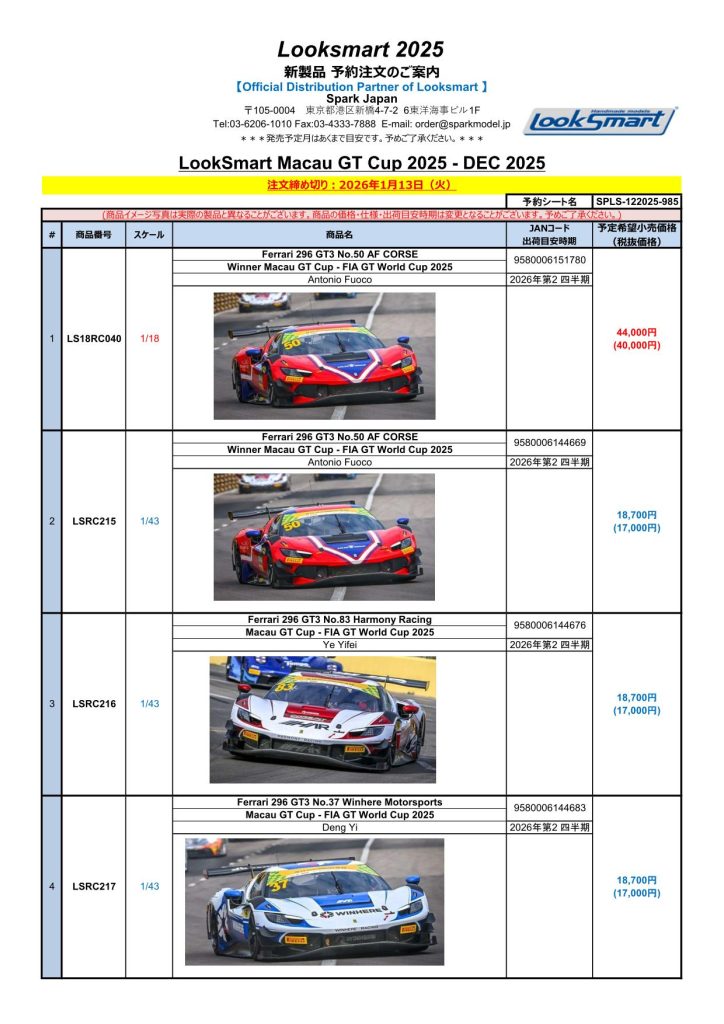 Date:2025年12月29日Posted By:Spark Japan 2Category:Pre order (予約注文)Tag:1/18, 1/43, Looksmart Spark製品お取り扱いショップにて、現在予約注文を受け付け中の新製品です。弊社HPやお電話・メールでの予約受け付けはしておりませんのでご了承ください。