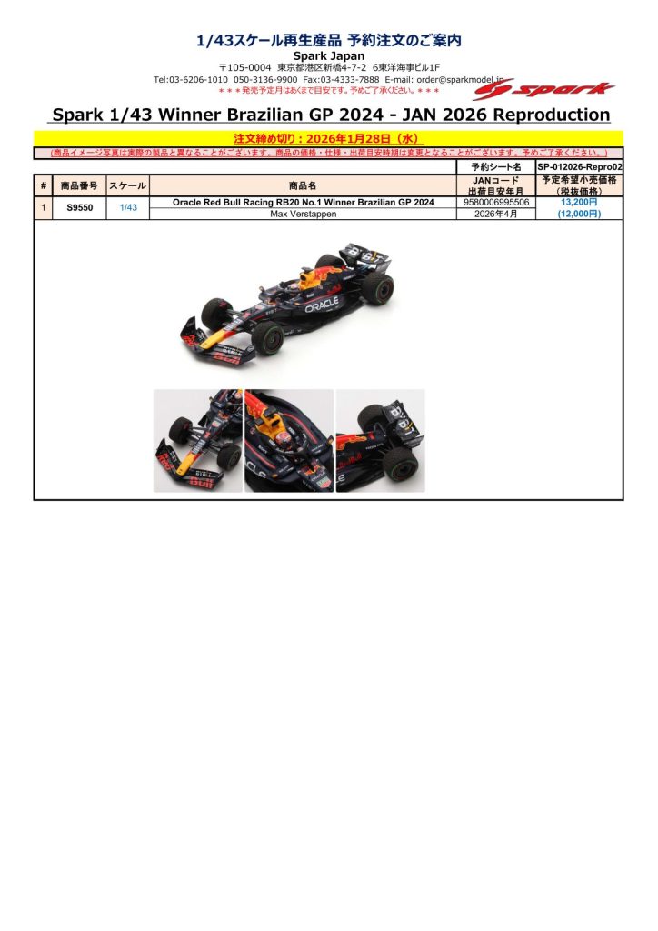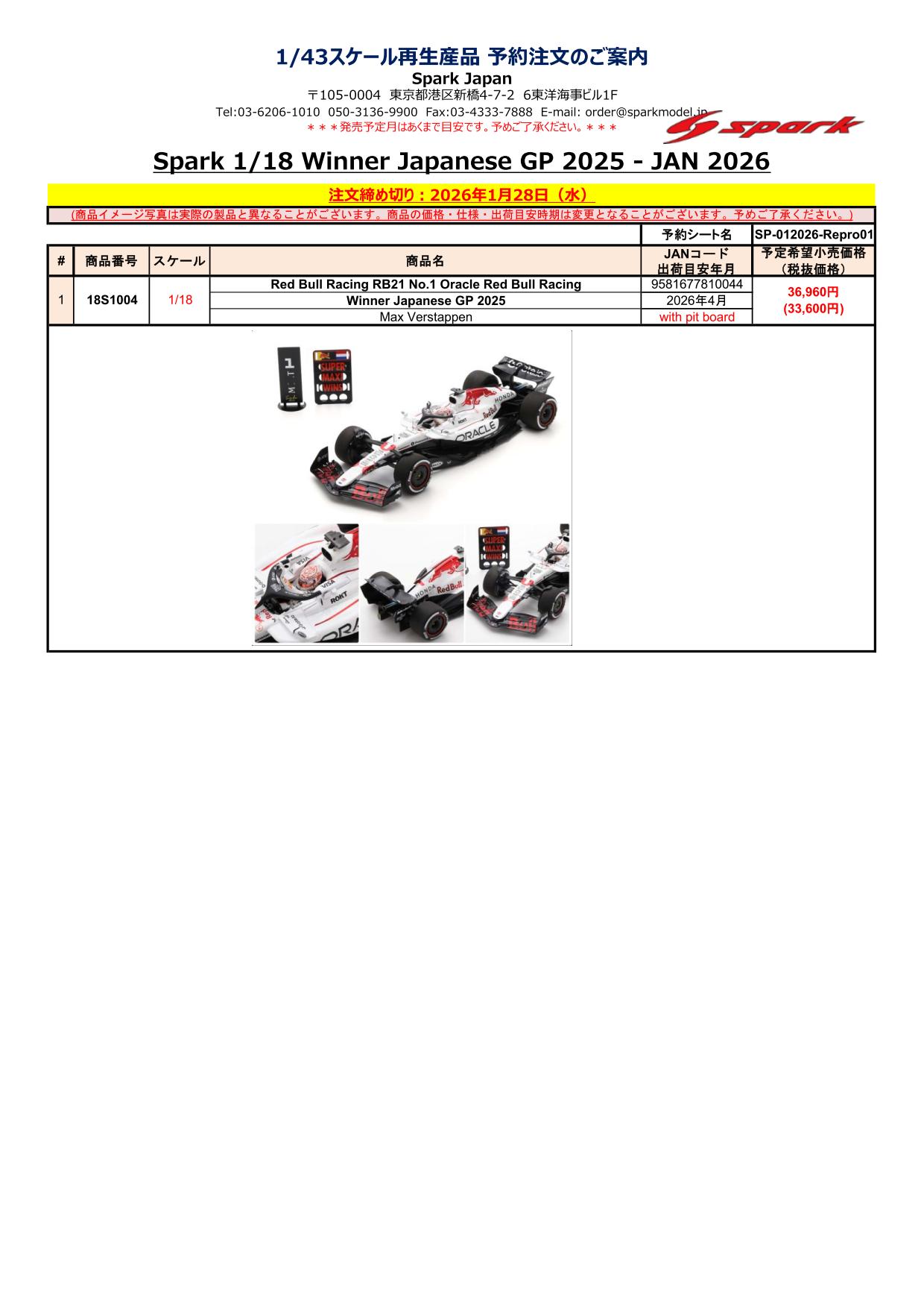 Date:2026年1月17日Posted By:Spark Japan 2Category:未分類Tag:1/18, 1/43, F1, spark 下記商品は、再生産できることとなりました。 なお、当HPおよびお電話での予約注文は行っておりません。なにとぞご了承のほどお願い申し上げます。