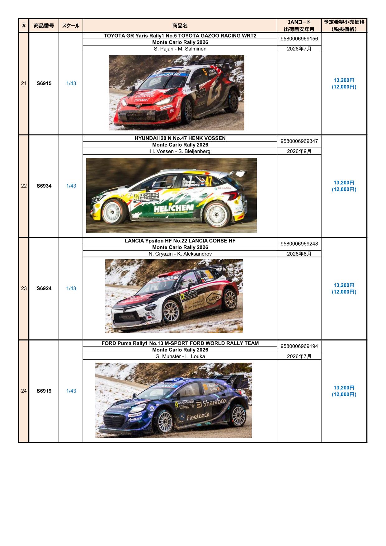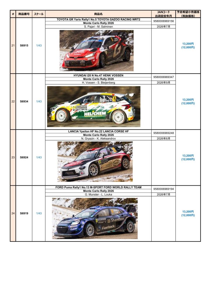 Date:2026年2月13日Posted By:Spark Japan 2Category:Pre order (予約注文)Tag:1/43, Monte Carlo Rally, spark, 予約注文 Spark製品お取り扱いショップにて、現在予約注文を受け付け中の新製品です。弊社HPやお電話・メールでの予約受け付けはしておりませんのでご了承ください。