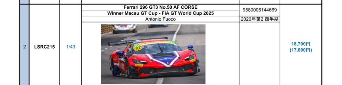 Date:2025年12月15日Posted By:Spark Japan 2Category:Pre order (予約注文)Tag:1/18, spark, Suzuka1000km Preorder Information
