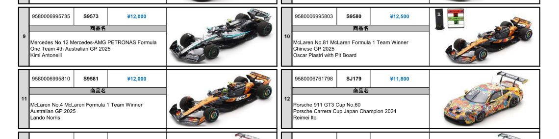 Date:2025年9月24日Posted By:Spark Japan 2Category:New product information (新商品情報)Tag:F1, Le Mans, Looksmart, spark, SUPER GT, 新商品 New Item Information